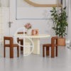 De Bonbon eetkamertafel is ontworpen voor 4–6 personen en past zich moeiteloos aan verschillende eetkamerstijlen aan. Dankzij de afgeronde hoeken en organische vormen creëert de tafel een uitnodigende en warme sfeer tijdens het diner.
