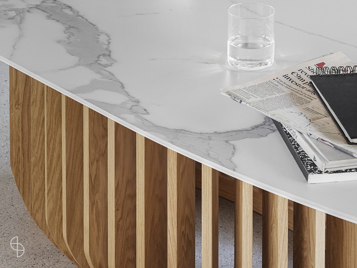 Wat de Juice tafel onderscheidt, is het unieke onderstel dat direct de aandacht trekt. De vloeiende lijnen en doordachte constructie zorgen voor een licht en ruimtelijk effect, terwijl het ontwerp tegelijkertijd kracht en stabiliteit uitstraalt. Dit maakt de tafel tot een subtiele eyecatcher die perfect past binnen moderne en minimalistische interieurs.